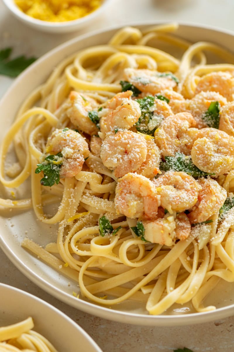 Wow! This was completely delish! I cut it down to one serving and used half the butter since I didn’t have the lower fat option. Still the flavor was incredible. I’m thinking about trying this with cut up chicken bites too. Half the family do not like shrimp, but I think lemon garlic would be good with chicken bites too!