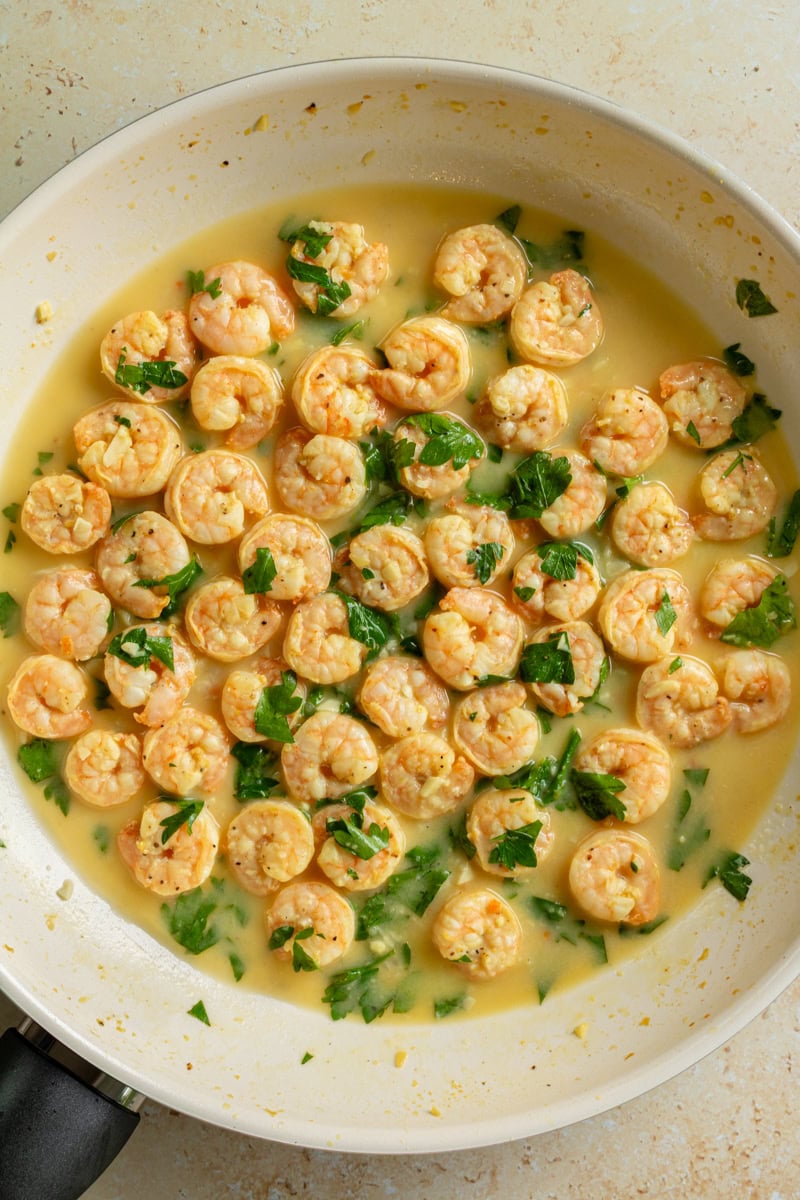 Garlicky lemon shrimp is the easiest one-pan meal you’ll make; it’s ready in minutes and tastes like it’s straight from a restaurant. This dish is made with simple ingredients, but is bursting with flavor. The delicious pan sauce pairs well with mashed potatoes or over pasta.