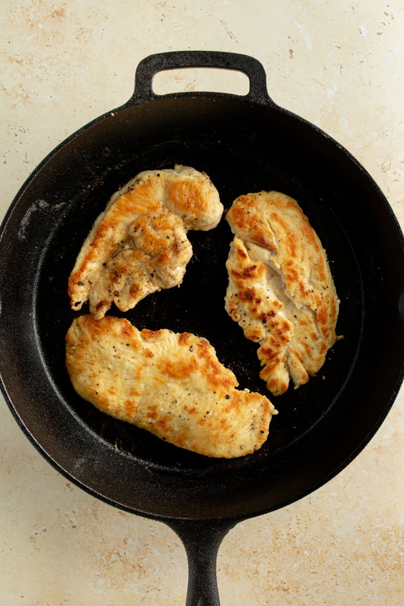 - Cover with the lid and reduce heat to simmer. Simmer for 10 minutes. The sauce will thicken from the flour the chicken was dredged in.