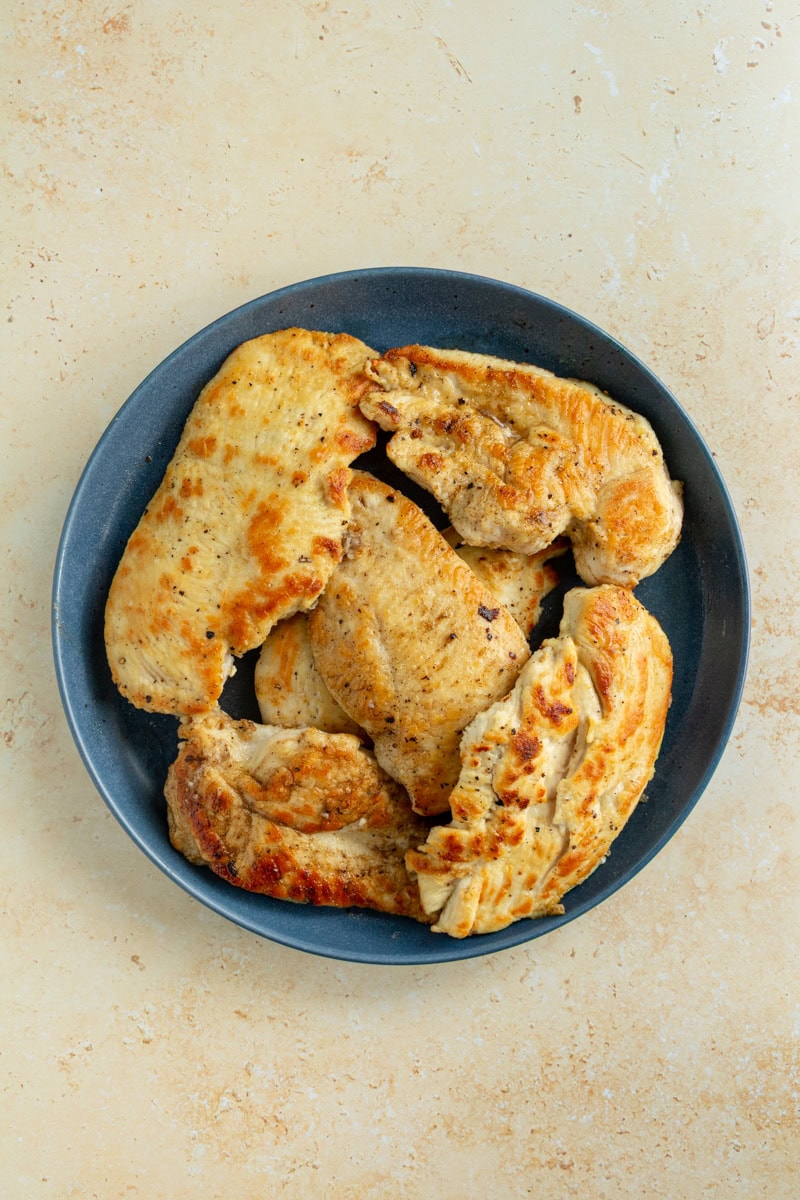 - Remove from the pan and set aside on a plate. Repeat this step with the remaining chicken pieces. They will not be fully cooked, but will continue to cook later in the sauce.